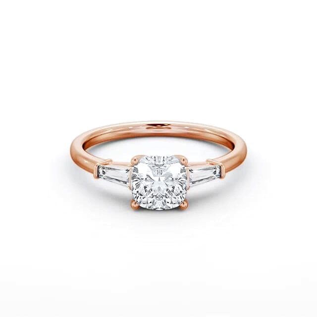 Cushion Ring 18K Rose Gold Solitaire with Tapered Baguette Side Stones | Lillyanne
