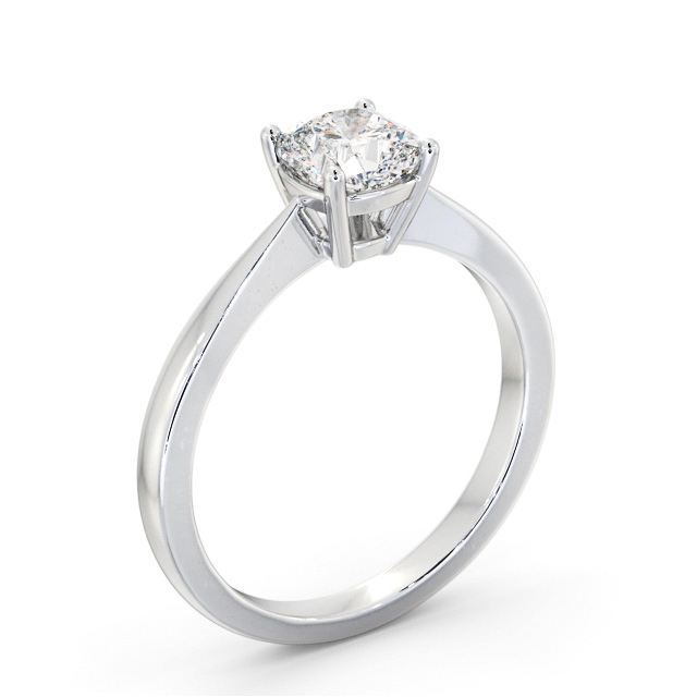 Cushion Diamond Tapered Band Engagement Ring 18K White Gold Solitaire | Petra