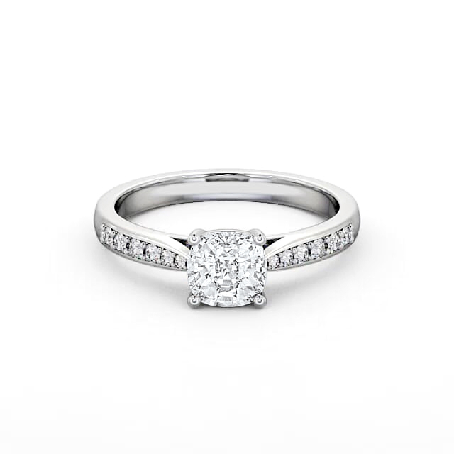 Cushion Diamond Tapered Band Engagement Ring 18K White Gold Solitaire | Rhiana