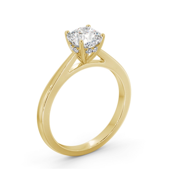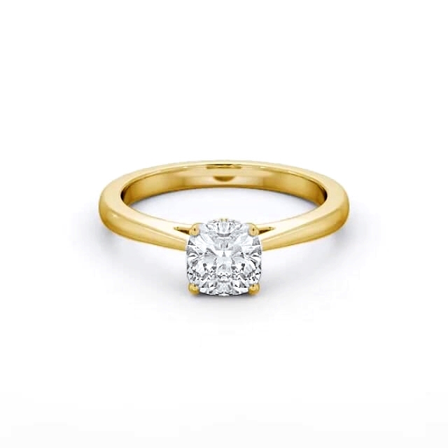 Cushion Ring with Diamond Set Rail 18K Yellow Gold Solitaire | Anniston