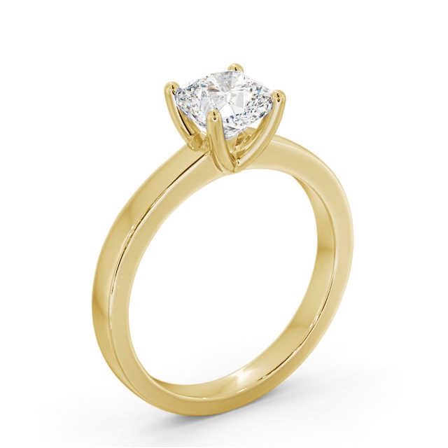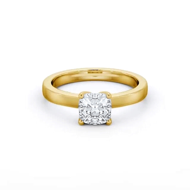 Annmarie diamond engagement ring with a four claw 18K Yellow Gold setting. This sophisticated solitaire engagement ring features a classic cushion shaped centre diamond atop a highly polished band. This ring is available in a range of metal options and your choice of natural or lab grown diamonds. We offer a free design service for any customised changes that you may require.