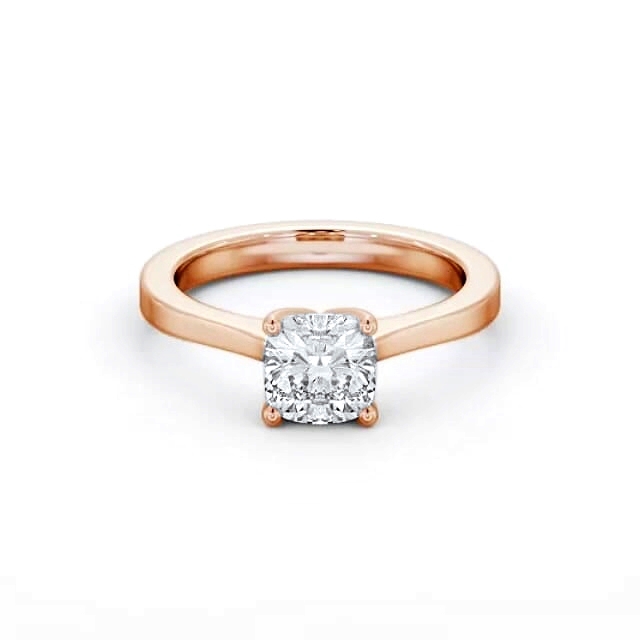 Emelyn diamond engagement ring with a four claw 9K Rose Gold setting. A beautiful cushion shaped diamond is perched in a classic four prong setting to exude its magnetic charm and distinctive beauty. This ring is available in a range of metal options and your choice of natural or lab grown diamonds. We offer a free design service for any customised changes that you may require.
