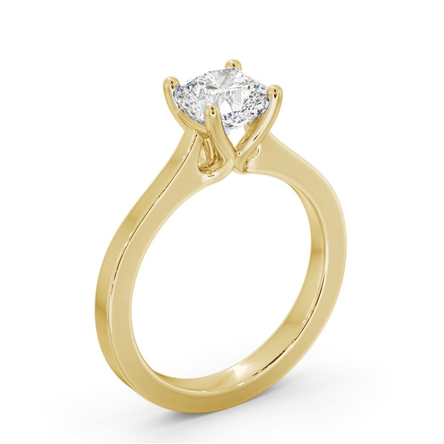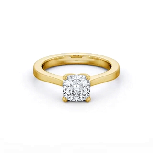 Emelyn diamond engagement ring with a four claw 9K Yellow Gold setting. A beautiful cushion shaped diamond is perched in a classic four prong setting to exude its magnetic charm and distinctive beauty. This ring is available in a range of metal options and your choice of natural or lab grown diamonds. We offer a free design service for any customised changes that you may require.