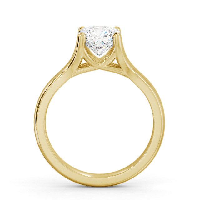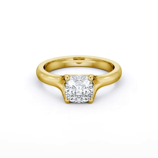 Ranal diamond engagement ring with a four claw 9K Yellow Gold setting. Absolute sophistication, classic four-prongs hold a charming cushion shaped diamond at top of perfectly polished solitaire ring. This ring is available in a range of metal options and your choice of natural or lab grown diamonds. We offer a free design service for any customised changes that you may require.