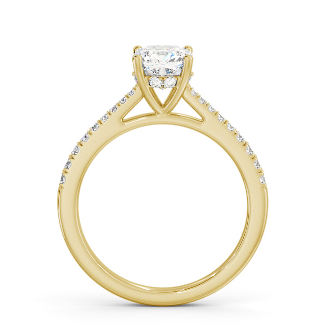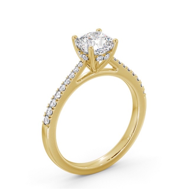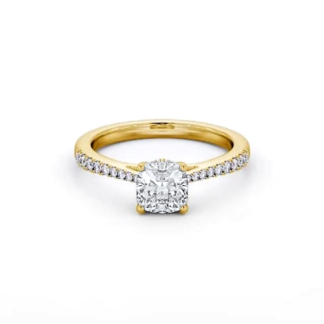 Cushion Ring 9K Yellow Gold Solitaire and Diamond Set Rail | Landren