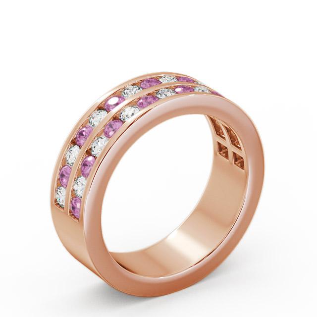 Breanna double row half eternity pink sapphire and diamond 1.20ct ring in a 9K Rose Gold setting. This impressive half eternity ring features two dazzling rows of round pink sapphire gemstones with a 0.75 Carat total weight and round diamonds with a 0.45 Carat total weight in an alternating pattern. This ring is available in a range of metal options with AAA grade gemstone. We offer a free design service for any customised changes that you may require.