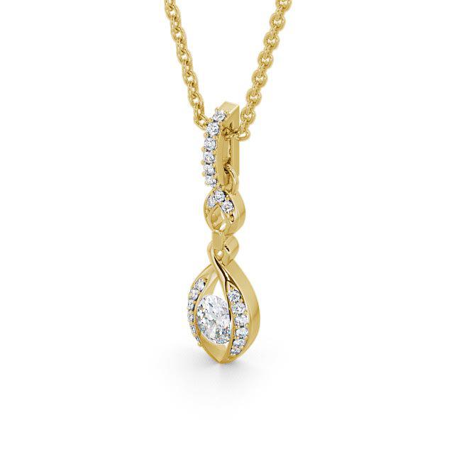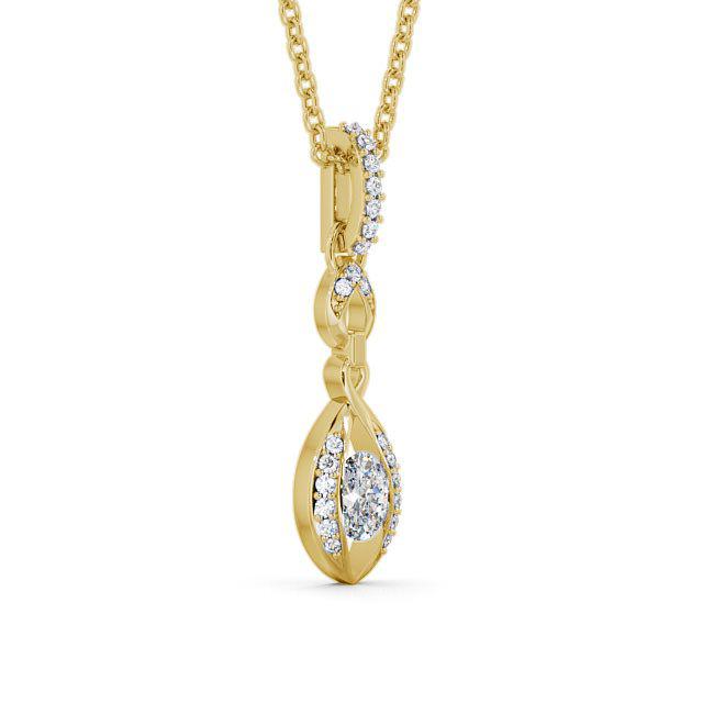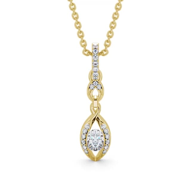 Yaneth drop diamond 0.48 Carat pendant in 9K Yellow Gold. Shining with elegance, this slander pendant showcases an oval-cut diamond shimmering at the centre of an open round diamond-lined marquise design. Smaller round diamonds will be of standard quality VS1 Clarity and F Colour. This pendant is available in a range of metal and chain options with your choice of natural or lab grown diamonds. We offer a free design service for any customised changes that you may require.