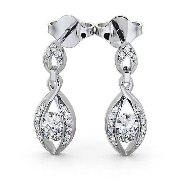 Drop Oval Diamond Unique Style Earrings 18K White Gold | Samarah
