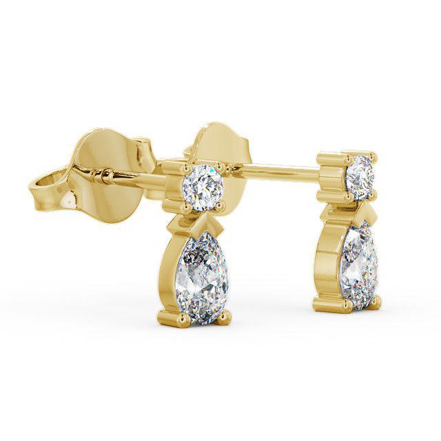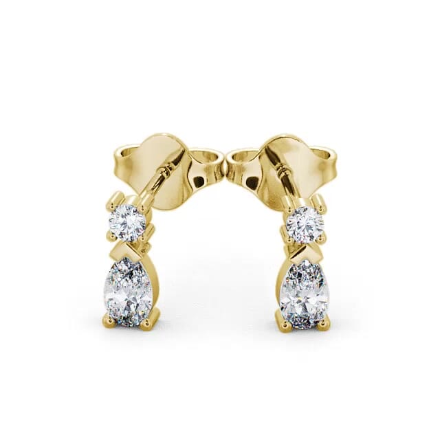 Everlie diamond drop earrings in 9K Yellow Gold. Subtle and attractive, these earrings are adorned with glistening pear and round shaped diamonds framed in a drop design. The total diamond weight is based on per pair. These earrings are available in a range of metal options and your choice of natural or lab grown diamonds. We offer a free design service for any customised changes that you may require.