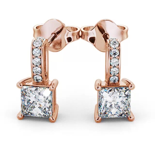 Drop Princess Diamond Earrings 9K Rose Gold | Natalya