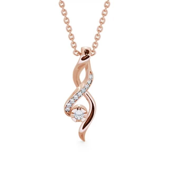 Milla drop diamond 0.11 Carat pendant in 9K Rose Gold. Exposing timeless elegance, this exquisite diamond pendant exhibits a dainty swirl design graced with sparkling round diamonds. This pendant is available in a range of metal and chain options with your choice of natural or lab grown diamonds. We offer a free design service for any customised changes that you may require.