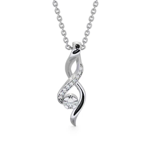 Milla drop diamond 0.11 Carat pendant in 9K White Gold. Exposing timeless elegance, this exquisite diamond pendant exhibits a dainty swirl design graced with sparkling round diamonds. This pendant is available in a range of metal and chain options with your choice of natural or lab grown diamonds. We offer a free design service for any customised changes that you may require.