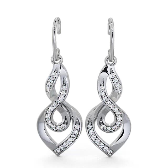 Dania diamond 0.24 Carat drop earrings in 18K White Gold. Luxe and lovely, these drop earrings exudes elegance with shimmering round diamonds lined swirling design. The total diamond weight is based on per pair. These earrings are available in a range of metal options and your choice of natural or lab grown diamonds. We offer a free design service for any customised changes that you may require.