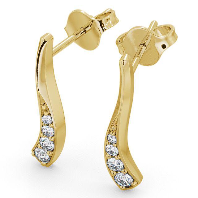 Drop Round Diamond 0.24ct Sweeping Design Earrings 9K Yellow Gold | Paris