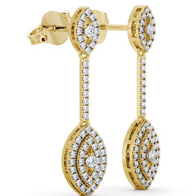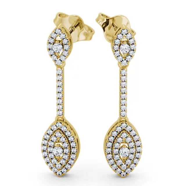 Hania diamond 0.50 Carat drop earrings in 18K Yellow Gold. glamourous and sophisticated, this impressive pair of drop earrings is designed with a marquise-shaped clusters of round diamonds. The total diamond weight is based on per pair. These earrings are available in a range of metal options and your choice of natural or lab grown diamonds. We offer a free design service for any customised changes that you may require.