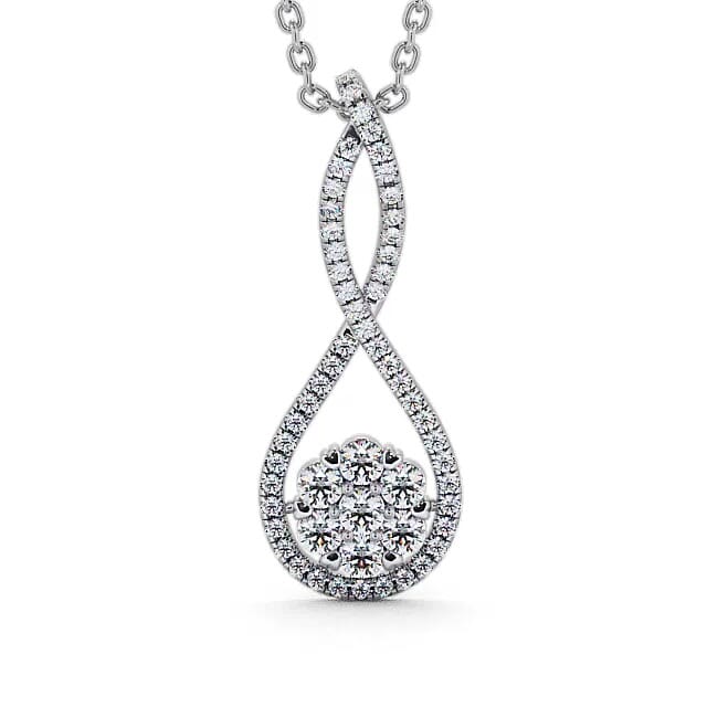 Julissa drop diamond 0.55 Carat pendant in 18K White Gold. Featuring an awe-inspiring design, this pendant showcases a cluster of round diamonds placed at the base of a glistening diamonds lined loop. This pendant is available in a range of metal and chain options with your choice of natural or lab grown diamonds. We offer a free design service for any customised changes that you may require.