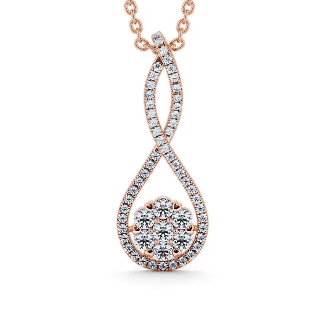 Julissa drop diamond 0.55 Carat pendant in 9K Rose Gold. Featuring an awe-inspiring design, this pendant showcases a cluster of round diamonds placed at the base of a glistening diamonds lined loop. This pendant is available in a range of metal and chain options with your choice of natural or lab grown diamonds. We offer a free design service for any customised changes that you may require.