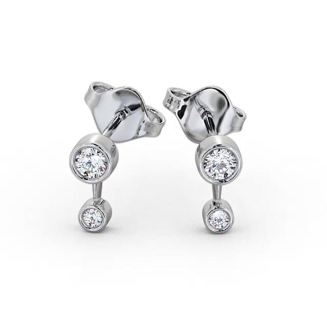 Kenslee drop diamond earrings in 18K White Gold. Simple yet trendy, each earring dazzles with two sparkling round diamonds set in a high polished bezel setting. The total diamond weight is based on per pair. These earrings are available in a range of metal options and your choice of natural or lab grown diamonds. We offer a free design service for any customised changes that you may require.