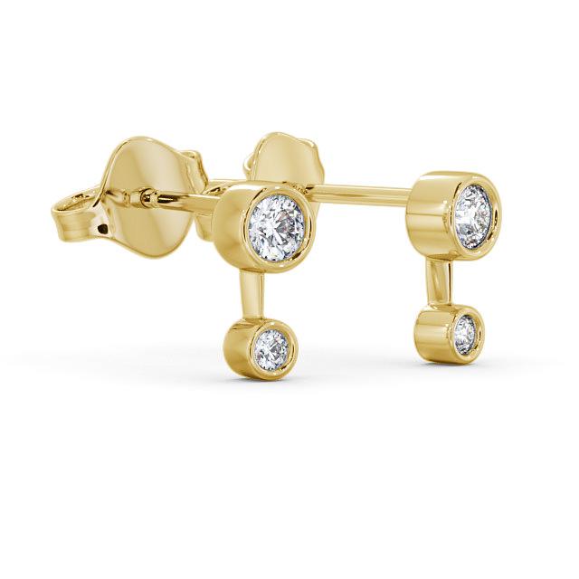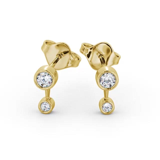 Kenslee drop diamond earrings in 18K Yellow Gold. Simple yet trendy, each earring dazzles with two sparkling round diamonds set in a high polished bezel setting. The total diamond weight is based on per pair. These earrings are available in a range of metal options and your choice of natural or lab grown diamonds. We offer a free design service for any customised changes that you may require.