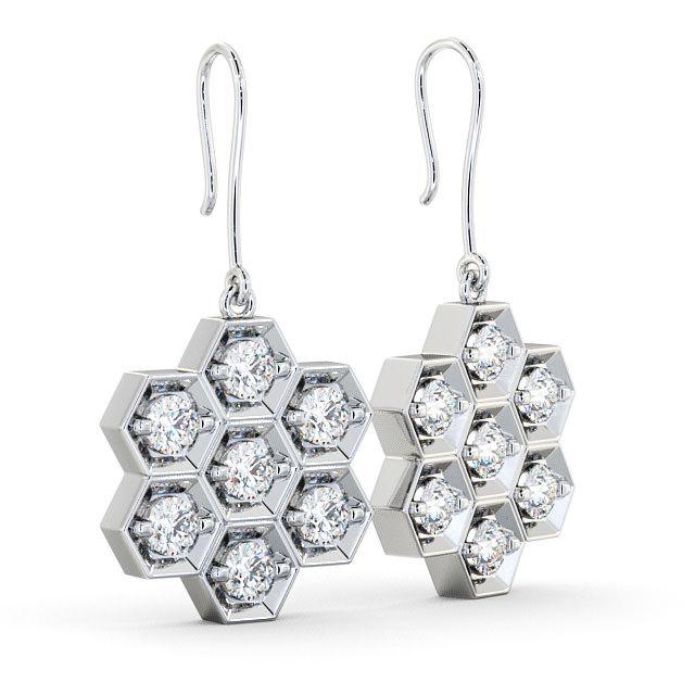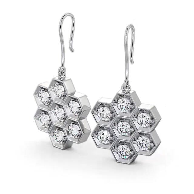 Macey diamond drop earrings in 9K White Gold. Unique and versatile, these dangle earrings features an elegant honeycomb design, each adorned with seven round shaped diamonds. The total diamond weight is based on per pair. These earrings are available in a range of metal options and your choice of natural or lab grown diamonds. We offer a free design service for any customised changes that you may require.