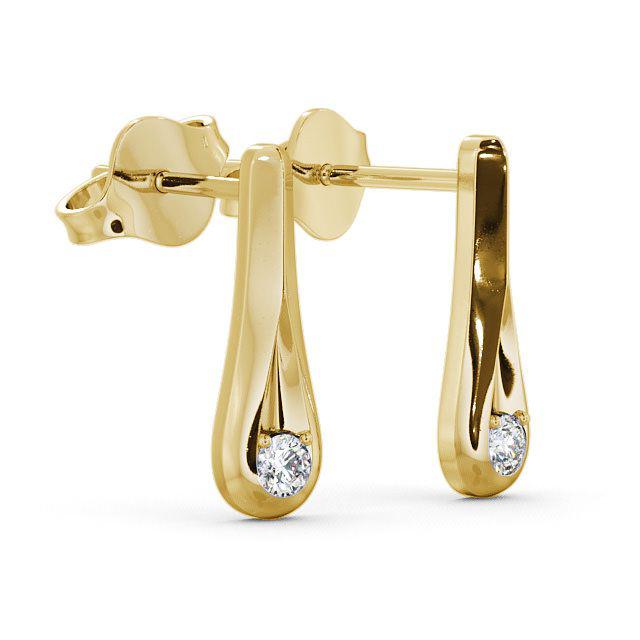 Aris diamond drop earrings in 9K Yellow Gold. Simple yet sophisticated, these drop design earrings feature a dazzling round shaped diamond at the bottom. The total diamond weight is based on per pair. These earrings are available in a range of metal options and your choice of natural or lab grown diamonds. We offer a free design service for any customised changes that you may require.
