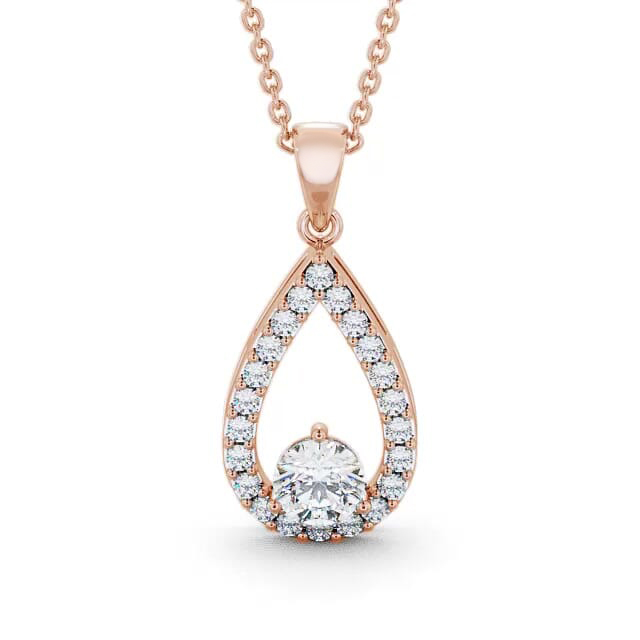 Drop Round Diamond Pear Design Pendant 18K Rose Gold | Angelia