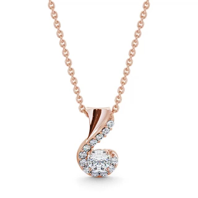 Drop Round Diamond Swirl Design Pendant 18K Rose Gold | Genevie