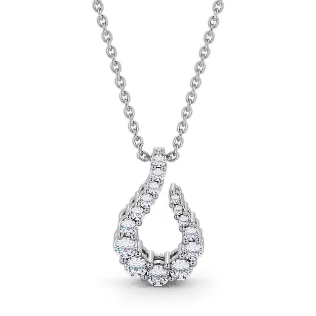 Lydia drop diamond pendant in 18K White Gold. This alluring hook design pendant is adorned with an assortment of round shaped diamonds in a prong setting. This pendant is available in a range of metal and chain options with your choice of natural or lab grown diamonds. We offer a free design service for any customised changes that you may require.