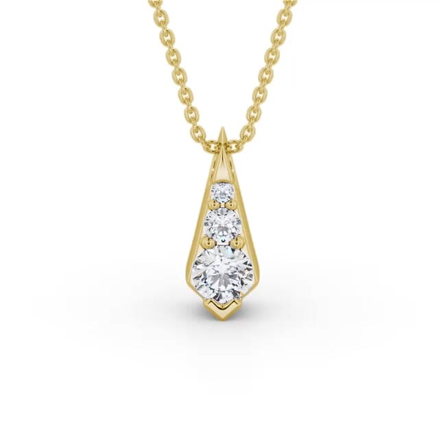 Abree drop diamond pendant in 9K Yellow Gold. Designed to allure, this stunning pendant boasts three graduated size round diamonds set in a silky drop design. Smaller round diamonds will be of standard quality VS1 Clarity and F Colour. This pendant is available in a range of metal and chain options with your choice of natural or lab grown diamonds. We offer a free design service for any customised changes that you may require.