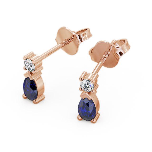 Drop Style Blue Sapphire and Diamond 0.72ct Earrings 9K Rose Gold | Amory