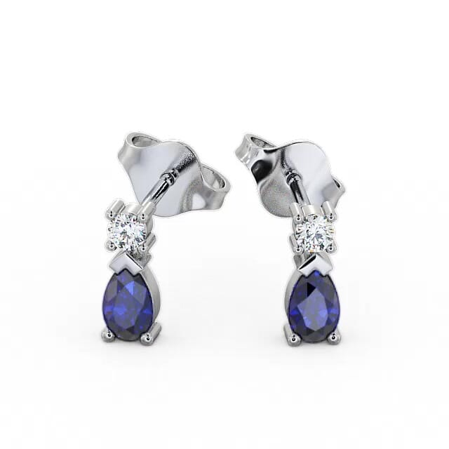 Drop Style Blue Sapphire and Diamond 0.72ct Earrings 9K White Gold | Amory