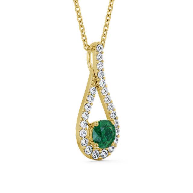 Deanna drop style emerald and diamond 1.30ct pendant in a 18K Yellow Gold setting. This exquisite pendant exhibits a dainty drop design lit by a round emerald at the core of shimmering diamonds encrusted loop. emerald weighs 0.80 Carat and diamonds weighs 0.50 Carat in total. The pendant is available in a range of metal and chain options with AAA grade gemstone. We offer a free design service for any customised changes that you may require.