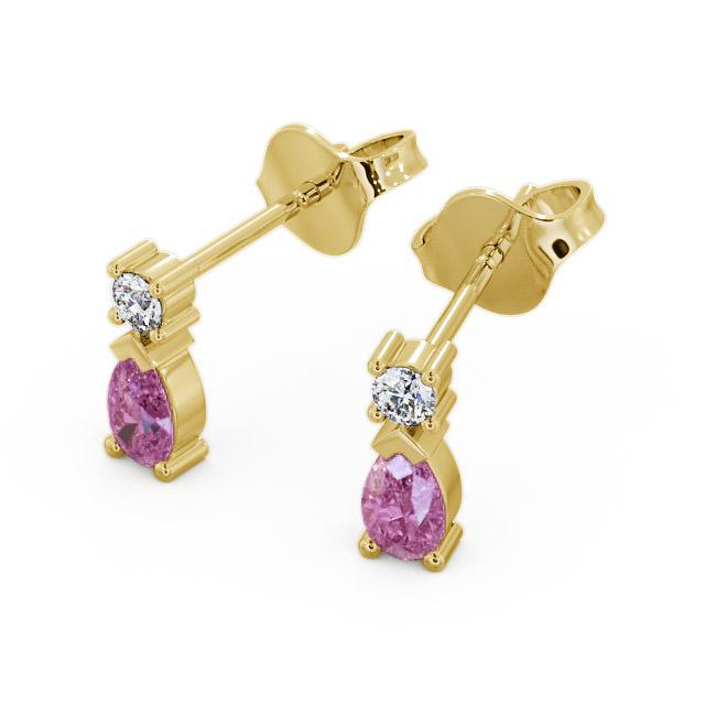 Drop Style Pink Sapphire and Diamond 0.72ct Earrings 9K Yellow Gold | Amory