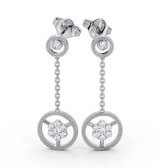 Drop Style Round Diamond Trilogy Earrings 18K White Gold | Avika