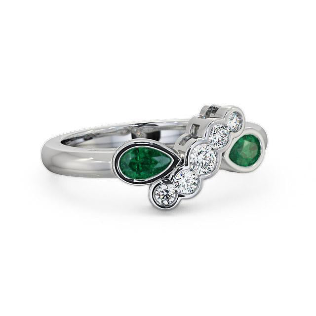 Kensington emerald and diamond 0.90ct ring in a Palladium setting. This stunning ring features a beautiful diagonal array of five round diamonds guarded by a dazzling pear-shaped emeralds on either side. emeralds total weight is 0.35 Carat and diamonds weighs 0.20 Carat in total. This ring is available in a range of metal options with AAA grade gemstone. We offer a free design service for any customised changes that you may require.