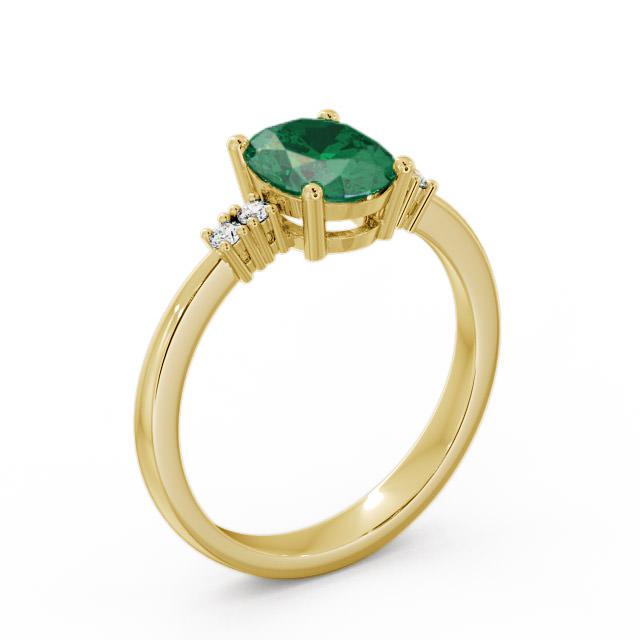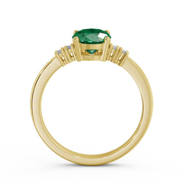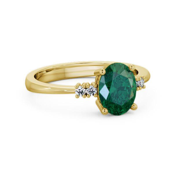 Zina emerald and diamond 1.32ct ring in a 18K Yellow Gold setting. Electrifying 1.26 Carat oval shaped emerald gemstone is cradled by four round shaped 0.06 Carat total weight diamonds to add extra detailing and sparkle to this ring. This ring is available in a range of metal options with AAA grade gemstone. We offer a free design service for any customised changes that you may require.