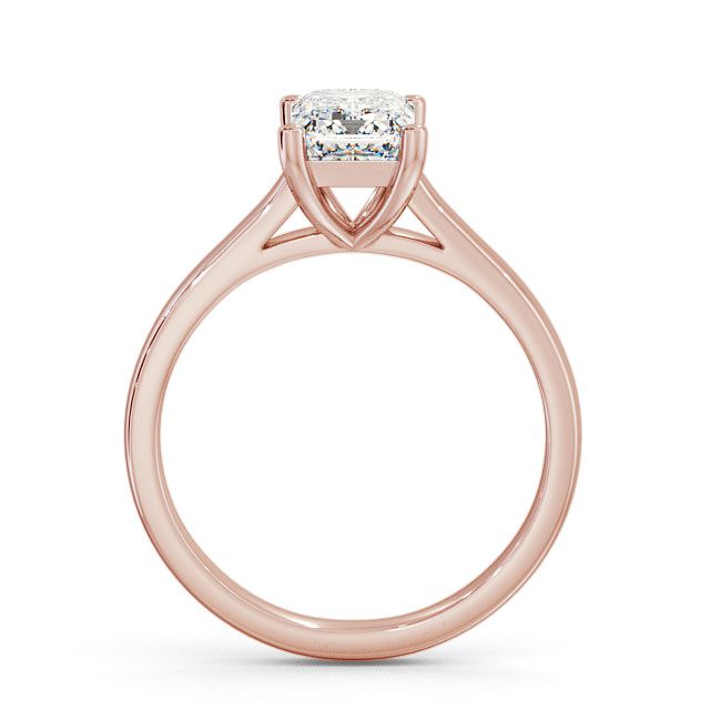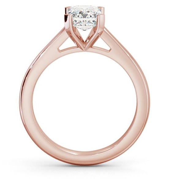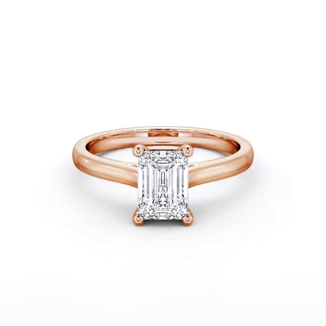 Darya diamond engagement ring with a four claw 18K Rose Gold setting. Luxurious and distinctive, this solitaire ring displays a glistening emerald shaped diamond set amidst four prominent prongs. With a mid band width of 2.3mm, this ring is available in a range of metal options and your choice of natural or lab grown diamonds. We offer a free design service for any customised changes that you may require.