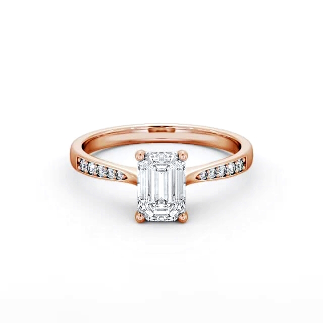 Emerald Diamond Tapered Band Engagement Ring 18K Rose Gold Solitaire | Christina