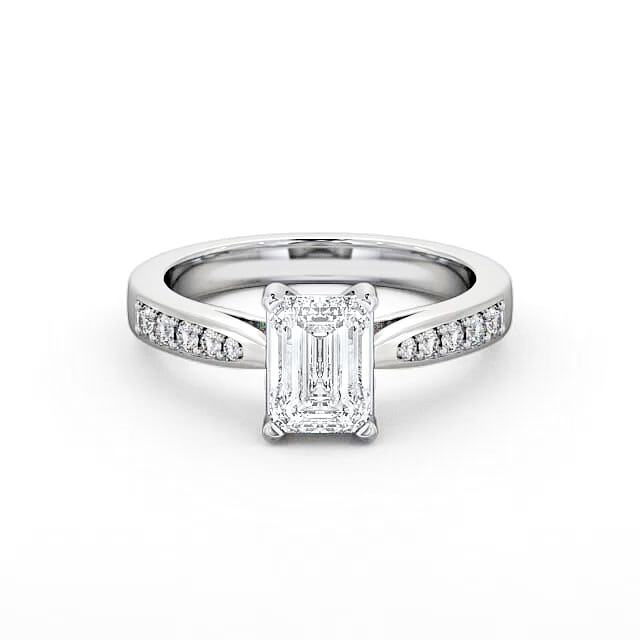 Emerald Diamond Tapered Band Engagement Ring 18K White Gold Solitaire | Arin
