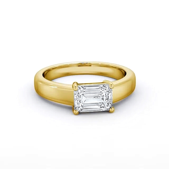 Emerald Diamond East West Design Ring 18K Yellow Gold Solitaire | Coralie