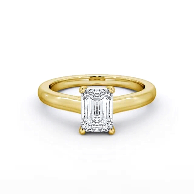 Roxanna diamond engagement ring with a four claw 18K Yellow Gold setting. Simply sublime, this solitaire ring flaunts a beautiful emerald shaped diamond held by a classic four-prong setting. With a mid band width of 2mm, this ring is available in a range of metal options and your choice of natural or lab grown diamonds. We offer a free design service for any customised changes that you may require.