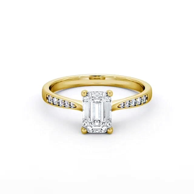Emerald Diamond Tapered Band Engagement Ring 18K Yellow Gold Solitaire | Christina