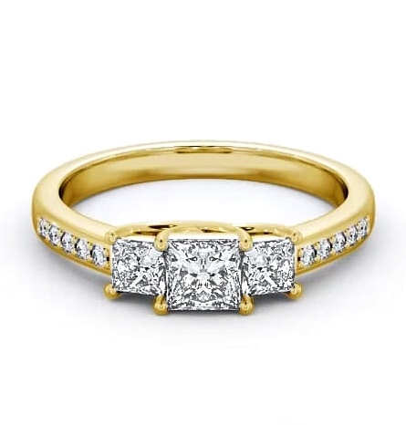 Christina diamond engagement ring with a four claw 18K Yellow Gold setting. Full of style and sparkle, this alluring ring holds an emerald shaped centre diamond flanked by small round diamond lined shoulders. Total diamond side stones weigh approximately 0.07ct with Clarity VS1 and Colour F. This ring is available in a range of metal options and your choice of natural or lab grown diamonds. We offer a free design service for any customised changes that you may require.