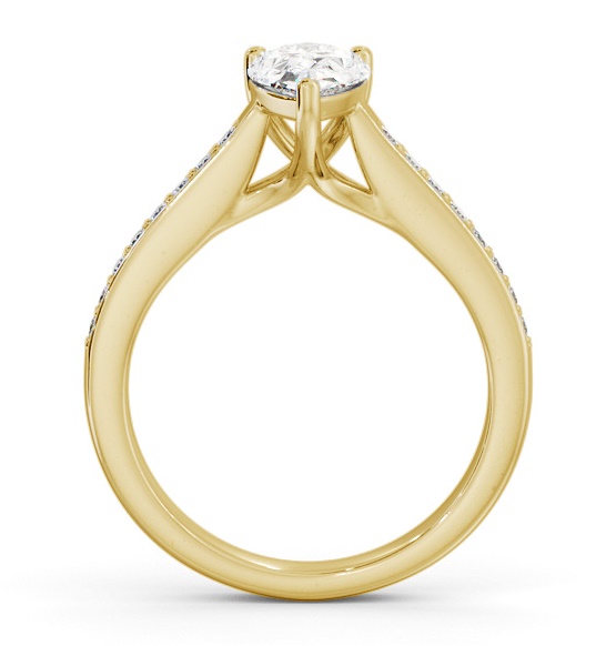 Tiana diamond engagement ring with a four claw 18K Yellow Gold setting. This contemporary engagement ring is illuminated by a splendid emerald shaped centre diamond, accompanied by sparkling array of round diamonds down the sleek band. The diamond side stones are an approximate total of 0.08ct with Clarity VS1 and Colour F. This ring is available in a range of metal options and your choice of natural or lab grown diamonds. We offer a free design service for any customised changes that you may require.
