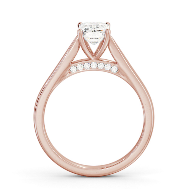Emerald Ring with Diamond Set Bridge 9K Rose Gold Solitaire | Wandel