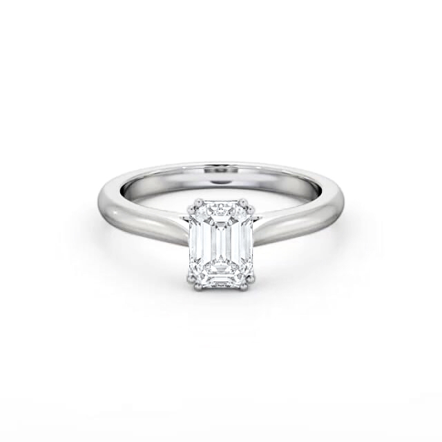 Emerald Diamond 8 Prong Engagement Ring 9K White Gold Solitaire | Maleena