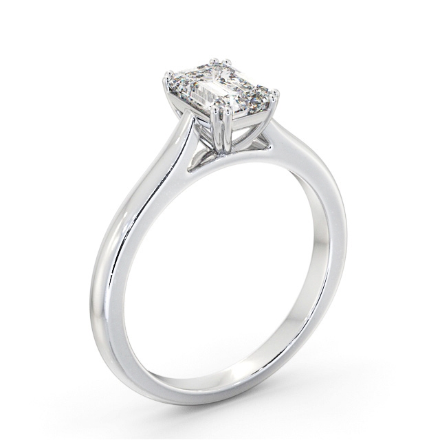 Maleena diamond engagement ring with a eight claw 9K White Gold setting. Classically styled, this fabulous ring boasts a stunning emerald shaped diamond solitaire in an unusual double claw setting. This ring is available in a range of metal options and your choice of natural or lab grown diamonds. We offer a free design service for any customised changes that you may require.