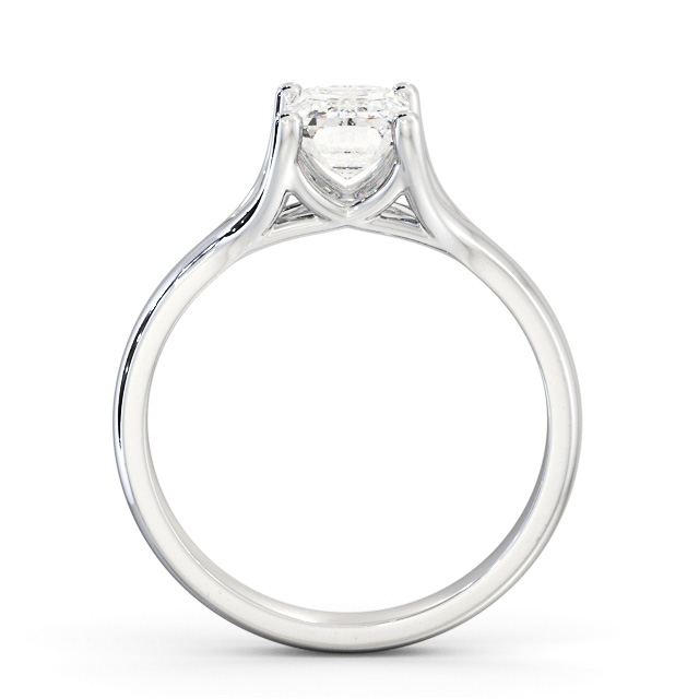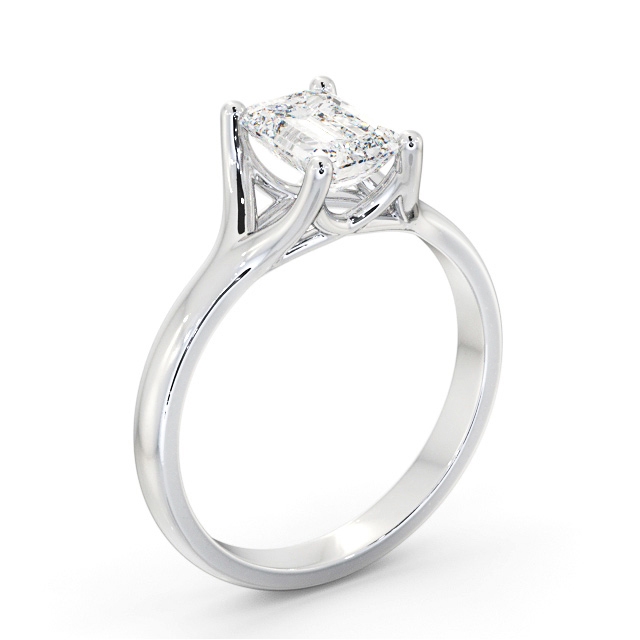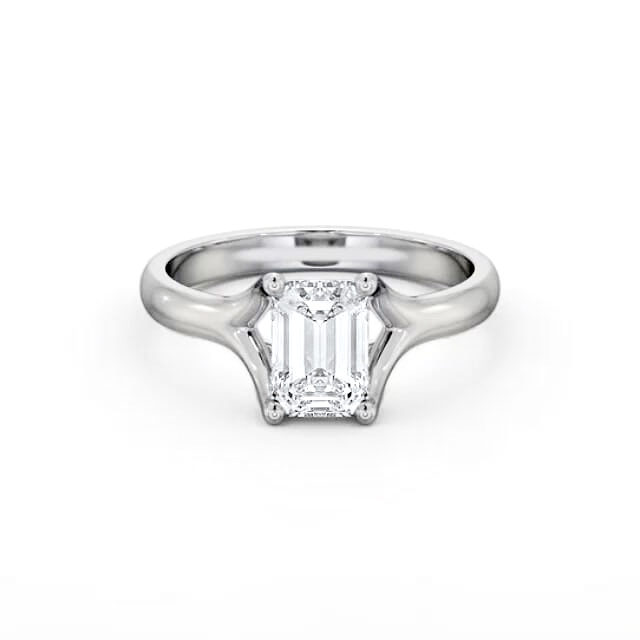 Karris diamond engagement ring with a four claw Palladium setting. The defined and sophisticated beauty of this ring is the emerald shaped diamond at the centre, held in place by a classic four prong setting on slightly split polished band. This ring is available in a range of metal options and your choice of natural or lab grown diamonds. We offer a free design service for any customised changes that you may require.