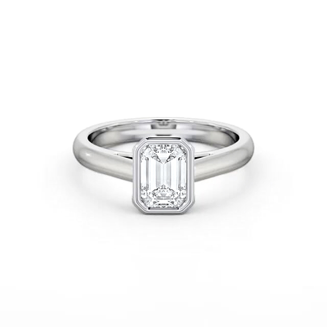 Emerald Diamond Bezel Setting Engagement Ring Platinum Solitaire | Britta