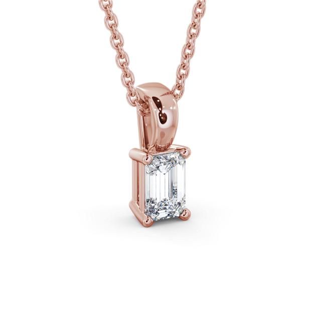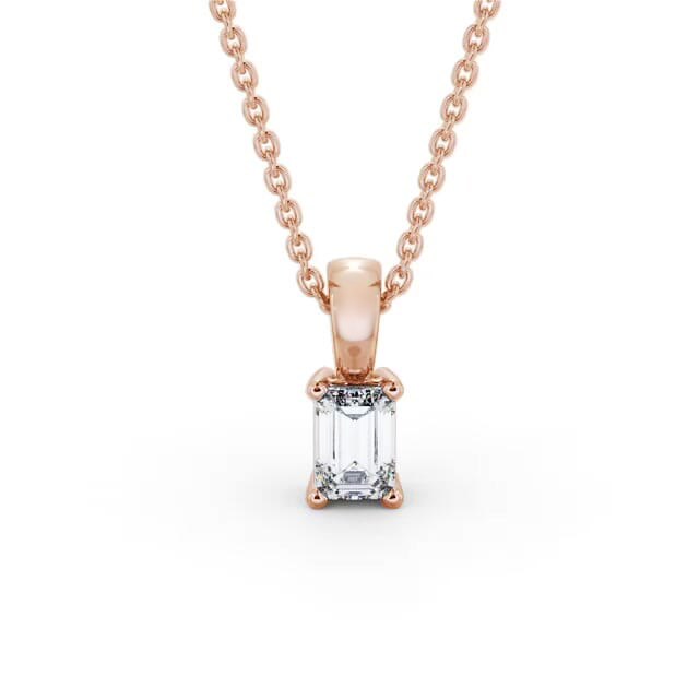 Alethia solitaire stud diamond pendant in 18K Rose Gold. Sophisticated beauty of a classic solitaire pendant is captured by a four-prong set emerald shaped diamond and a sleek bail. This pendant is available in a range of metal and chain options with your choice of natural or lab grown diamonds. We offer a free design service for any customised changes that you may require.